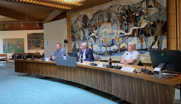 ( Bild zeigt Landrat Franz Löffler bei Corona-Pressekonferenz im Sommer )