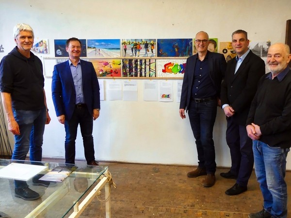 Info zum Bild: Oskar Reithmeier, Oberbürgermeister Thomas Thumann, Johann Beck, Rainer Seitz und Hubert Baumann (von links) gefallen die Konzepte für das „Life Side Gallery“-Projekt.
