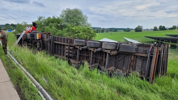 Ein LKW-Unfall hat heute den Verkehr auf der A 93 in Richtung Regensburg massiv behindert. Der Sattelzug mit einer Ladung aus LKW-Anhängern war bei Hausen von der Fahrbahn abgekommen, es könnte sein, dass der tschechische Fahrer eingenickt ist. Sein Gespann walzte die Seitenleitplanke auf 150 Metern Länge nieder und kippte dann auf die rechte Seite. Der 57 Jahre alte Fahrer kam leicht verletzt ins Krankenhaus. Ein Autokran musste anrücken, um den LKW zu bergen, das hat Stunden gedauert. Zeitweise war die A 93 Richtung Regensburg komplett gesperrt. Die Schadenshöhe ist laut der zuständigen Polizei in Mainburg im mittleren fünfstelligen Bereich anzusiedeln.