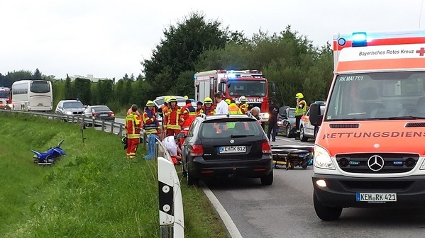 Bei Mainburg im Landkreis Kelheim ist am Abend ein Quad-Fahrer schwer verletzt worden. Ein Autofahrer hatte auf der B301 einen Bus überholt und dabei offensichtlich das entgegenkommende Quad übersehen. Das Fahrzeug wurde beim Zusammenstoß über die Leitplanke geschleudert. Der schwer verletzte 17-Jährige wurde mit dem Rettungshubschrauber ins Klinikum Landshut geflogen.