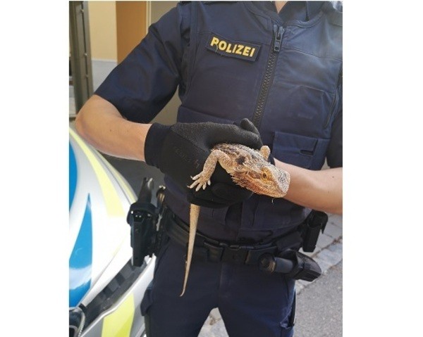 Am Samstag, den 11.07.2020 gegen 19:50 Uhr, fand eine 36-jährige Regensburgerin einen Bartagamen. Der Mini-Drache hielt sich in der Schöneberger Straße im Regensburger Osten auf. Da bislang kein Besitzer bekannt ist, wurde er zur PI Regensburg Süd verbracht und seitdem hingebungsvoll versorgt. Friedolin – so wurde das Reptil vorübergehend getauft – wärmt sich seitdem an seiner Wärmflasche. Sollte sich kein Besitzer ermittelt lassen, muss er im Laufe des Tages in eine Reptilienauffangstation gebracht werden.
