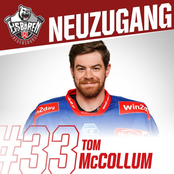 Über 350 Spiele in der zweithöchsten nordamerikanischen Spielklasse AHL – und sogar drei Einsätze in der NHL, der besten Liga der Welt: Auf einem exklusiven Sponsoren-Event hat Eishockey-Zweitligist Eisbären Regensburg jetzt mit Tom McCollum einen weiteren hochkarätigen Neuzugang für das Tor präsentiert. Der 33-jährige US-Amerikaner kommt vom HC Innsbruck (Österreich) aus der sogenannten ICEHL (International Central European Hockey League) in die Domstadt, für den er in den vergangenen drei Spielzeiten starke Leistungen zeigte.