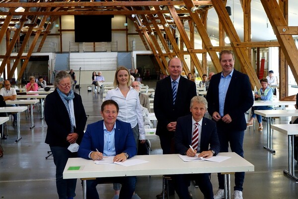 Bild: Vertragsunterzeichnung, Oberbürgermeister Thomas Thumann und Prof. Dr. Clemens Bulitta unterzeichnen die Kooperationsvereinbarung