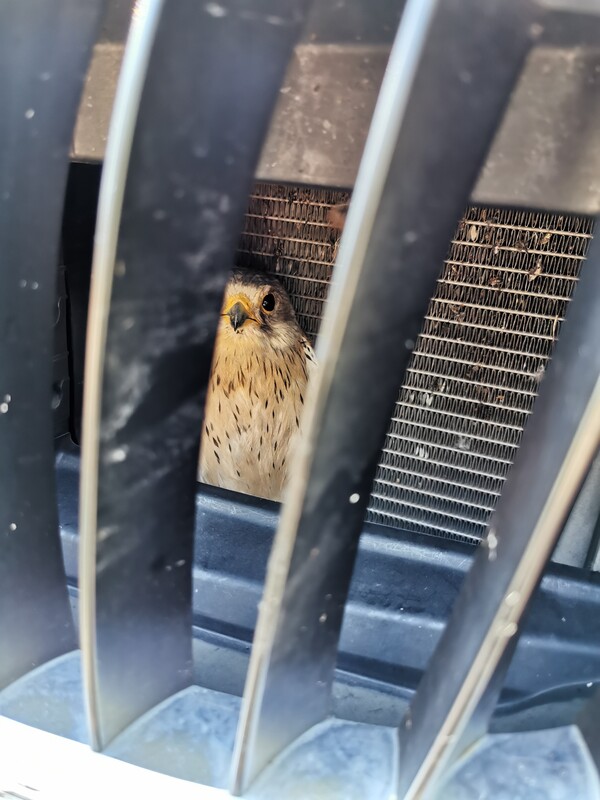Ein kurioser Fall in der Oberpfalz hat für große Unterhaltung bei der Polizei gesorgt. Die Fahrerin eines Pkw teilte der Polizei in Weiden gestern Nachmittag mit, dass sich ein „blinder Passagier“ in ihrem Wagen aufhalte und nicht wieder herauskommen will. Als die Beamten nachsahen bemerkten sie einen kleinen Falken hinter dem Kühlergrill des Wagens. Offenbar war der Vogel mit dem fahrenden Auto zusammengestoßen und dabei durch die Stäbe des Grills geschlüpft. Die Beamten befreiten den scheinbar unverletzten Vogel und brachten ihn in eine Wildvogelauffangstation.