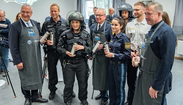 Auf dem Speiseplan der Polizisten in der Diensthundeschule Herzogau steht immer donnerstags ein ganz besonderer Drink, nämlich ein Power Shake mit Haferflocken, Leinsamen und frischem Obst. Entwickelt wurde er von elf Köchen der bayerischen Bereitschaftpolizei gemeinsam mit Sternekoch Alexander Herrmann. Daran beteiligt war auch Sandra Ostarek, die Köchin in Herzogau. Jeden Donnerstag gibt’s den Shake in der Hundeschule als gesunde Ergänzung zur Ernährung, auch in allen anderen Kantinen der Bereitschaftspolizei hat der Shake Einzug gehalten. Damit reagiert man auf die geänderten Essgewohnheiten gerade bei den jungen Polizisten: so wird die vor Jahren noch sehr beliebte Wursttheke beim Frühstück heute eher verschmäht, stattdessen greifen die Polizisten lieber zu Müsli, Quark und Obst.