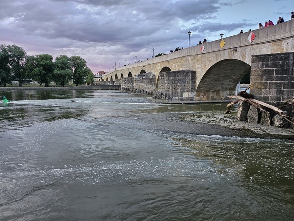 Regensburg: Hochwasser-Treibgut bei Steinerner Brücke kommt weg