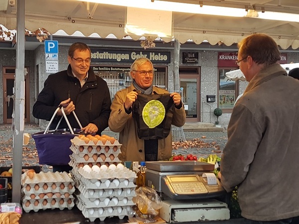 von Bürgermeister Jürgen Huber und Umweltsamtsleiter Rudolf Gruber an Besucher wiederverwendbare Taschen verteilt.