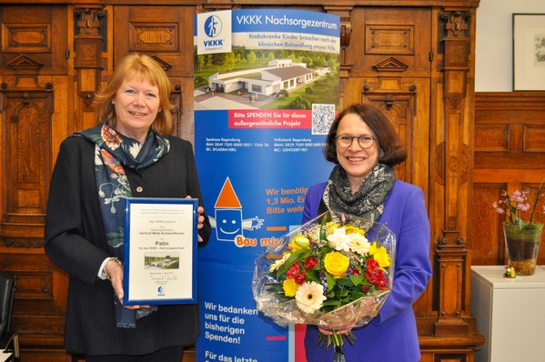 Der Verein zur Förderung krebskranker und körperbehinderter Kinder Ostbayern, VKKK, startet in Kürze in Zeitlarn den Bau eines Nachsorgezentrums. Dort sollen sich künftig Kinder nach einer überstandenen Krebserkrankung wieder erholen. Über vier Millionen Euro wird das Projekt kosten, jetzt hat es auch eine bekannte Persönlichkeit als Patin: Die Regensburger Oberbürgermeisterin Gertrud Maltz-Schwarzfischer. Sie hat im Alten Rathaus die Patenschafts-Urkunde bekommen und will das Nachsorgezentrum so gut wie möglich unterstützen.