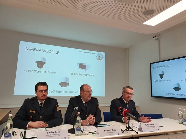 Sprecher Florian Beck, Polizeipräsident Norbert Zink und der Leiter der PI Süd, Gerhard Roider, beantworteten heute Fragen zur Videoüberwachung.