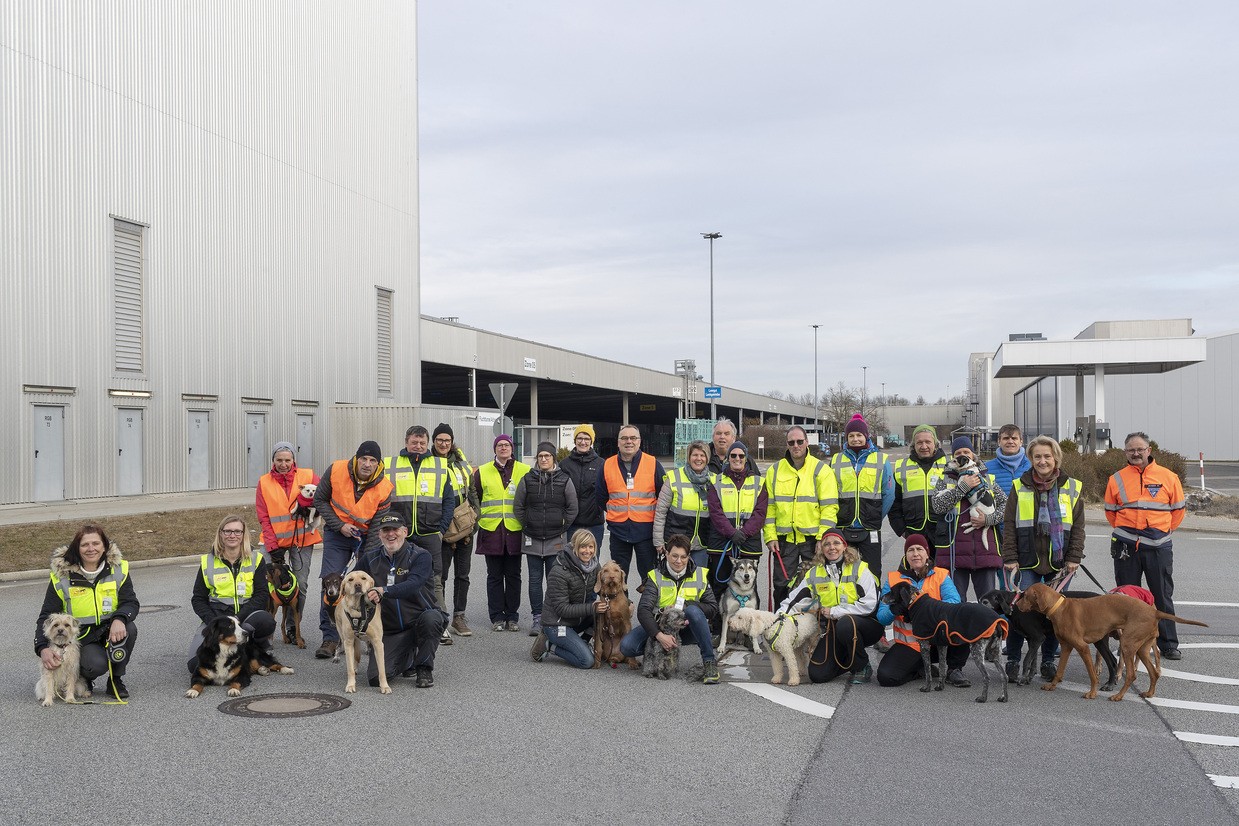 Mit der Schnauze im Wind und wedelndem Schwanz bahnt sich der Hund seinen Weg durch die Werkshalle. Er folgt einer menschlichen Geruchsspur, die er kurz zuvor von einem getragenen Kleidungsstück aufgenommen hat. Sein Ziel: den Menschen über den Geruch zu finden. Die tierische Super-Spürnase gehört zu einem von 15 Mantrailer-Hunden der Suchhunde Donau-Jura, die am vergangenen Wochenende auf dem Gelände des BMW Group Werks Regensburg das Auffinden von vermissten Personen oder Tieren trainierten – auf Einladung der Werksicherheit des Standorts.