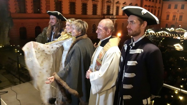 im Bild: v.li. Das fürstliche Christkind Amelie Thaler, Fürstin Gloria, Pfarrer Roman Gerl segnete den Weihnachtsmarkt und seine Besucher. Umrahmt von fürstlichen Lakaien.