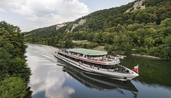 Mit dem Schiff von Kelheim nach Riedenburg- das ist ab 1. Mai wieder möglich, dann startet nämlich der Linienverkehr im Altmühltal. Das wird bereits am Vorabend mit dem Tanz in den Mai auf der Altmühlperle gefeiert, ab 19 Uhr 30 legt sie in Kelheim ab und es gibt noch einige Restplätze. Höhepunkt dürfte nach Einbruch der Dunkelheit das große Eröffnungsfeuerwerk mit Musik sein. Bis Oktober verkehren ab 1. Mai dreimal täglich außer montags Schiffe zwischen Kelheim und Weltenburg. Und die Strecke hat viele Besonderheiten zu bieten, unter anderem die Kelheimer Schleuse, bei der das Schiff acht Meter in die Höhe gehoben wird, weiter geht’s vorbei an Essing und der Burgruine Randeck und der Burg Prunn bis nach Riedenburg. Der Linienverkehrr wird auch gern von Radlern und Wanderern genutzt: hinzu wird gestrampelt und gewandert, der Rückweg erfolgt dann gemütlich mit dem Schiff .