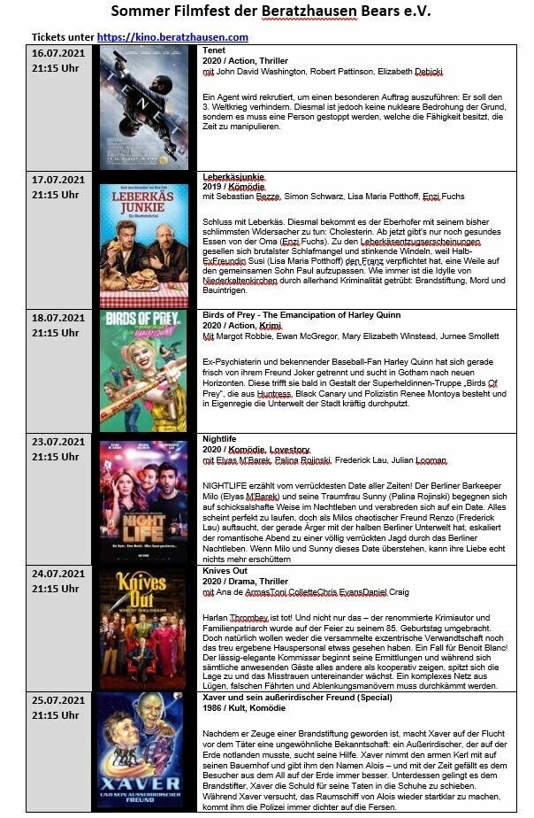 Tickets können hier gebucht werden: Sommer Filmfest Beratzhausen