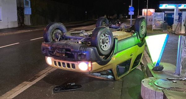 Ein spektakulärer Unfall hat gestern Abend Feuerwehr und Rettungdienst in Amberg gefordert. Dort war ein 64-Jähriger mit seinem Geländewagen zu schnell in einen Kreisverkehr eingefahren. Das Auto überschlug sich, krachte gegen eine Tankstellen-Absperrung und blieb dann auf dem Dach liegen. Der Autofahrer kletterte unverletzt aus dem Wrack, der Schaden wird mit 5.500 Euro angegeben.