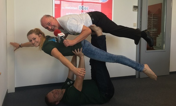 Am Sonntag finden in Regensburg die Deutschen Turngruppenmeisterschaften statt. 2.200 Sportler und Kampfrichter aus allen Bundesländern sind mit dabei. In Teams bis zu 12 Personen können sie in insgesamt 8 Disziplinen (u.a. ist Singen und Orientierungslauf mit dabei) Punkte sammeln. Die Organisatoren vom SV Fortuna Regensburg Tanja Schäfler und Markus Zdanowez waren im Charivari-Studio, gaben eine Kostprobe ihres eigenen Könnens und bauten in ihre Akrobatik-Vorführung Charivari-Sportchef Armin Wolf mit ein.