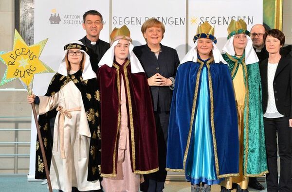 Dort, wo sonst ruhige Arbeitsatmosphäre herrscht, besuchten am Montag 108 Sternsinger aus ganz Deutschland das Bundeskanzleramt und brachten ihren Segen für das neue Jahr. Die Sternsinger Lea (13), Leon (12), Anna (11) und Simon (12) aus der Gemeinde St. Ägidius in Schmidmühlen im Landkreis Amberg-Sulzbach vertraten das Bistum Regensburg beim Sternsinger-Empfang von Bundeskanzlerin Angela Merkel. „Wenn ihr da seid, dann verändert sich die Stimmung hier ein bisschen. Ihr kommt mit euren bunten Kostümen, mit euren hoffnungsvollen Liedern. Wenn wir euch sehen und hören, wissen wir wieder, dass das etwas zu tun hat mit unserer Arbeit. Es geht nämlich darum, dass sich Hoffnungen erfüllen und wir immer wieder neue Wege in Angriff nehmen. Und genau das tut ihr auch“, sagte die Bundeskanzlerin zu den Kindern und Jugendlichen. Die 59. Aktion Dreikönigssingen steht unter dem Leitwort „Segen bringen, Segen sein. Gemeinsam für Gottes Schöpfung – in Kenia und weltweit!“