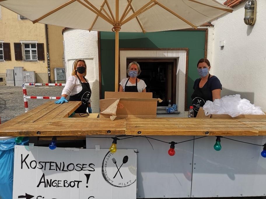 Seit inzwischen 20 Jahren kümmert man sich hier um Obdachlose und bedürftige Menschen aus Regensburg, doch auch der Strohhalm musste wegen des Corona-Virus erstmal schließen. Jetzt es geht es langsam wieder los mit einer Essensausgabe, hat uns der 1. Vorsitzende Josef Troidl erzählt. „Rein lassen dürfen wir leider noch niemanden, aber die Bedürftigen können sich mit entsprechendem Abstand und einer Schutzmaske anstellen, wir haben 2 Tische und eine Plexiglasscheibe vor der Eingangstür stehen, da werden dann Tüten ausgegeben mit einem Getränk, einem Mittagessen und einem Stück Obst.“ Unterstützung bekommt das Team des Strohhalm erstmal noch von ehrenamtlichen Helfern des Projekts „Gastfreundschaft hilft Regensburg“. Die haben seit Anfang April Mittagessen und Lebesmitteltüten an Bedürftige am Bismarckplatz verteilt.