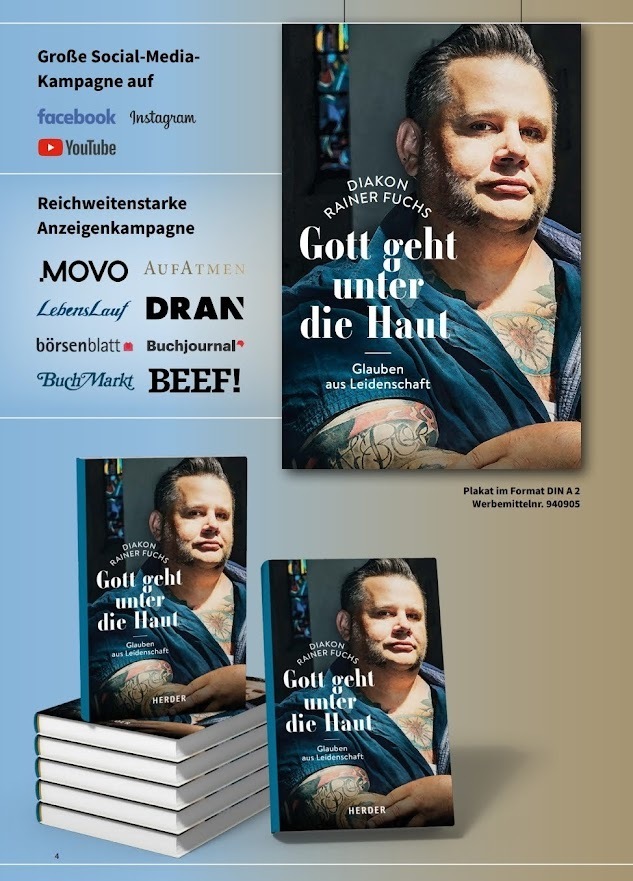 Heute Abend ist der tätowierte Rockmusik-Fan, der Diakon Rainer Fuchs zu Gast in Neumarkt. Er spricht über sein Buch „Gott geht unter die Haut“, erzählt dabei sehr ehrlich über seine Höhen und Tiefen im Leben. Begleitet wird Fuchs dabei von Musikern, die vor allem Songs von Johnny Cash spielen werden. Cash ist für Fuchs ein echtes Idol. Ähnlich wie er selbst, durchlebte der Musiker schöne, aber auch schwierige Zeiten und war dabei stets gläubig.