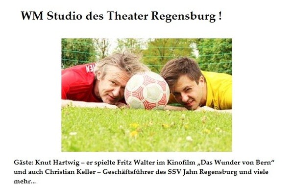 Sie wollen den Gast des WM-Studios im Torwandschießen herausfordern? Dann laden Sie Ihr Bewerbungsvideo in der Facebook-Veranstaltung zu unserem WM-Studio hoch. Zu gewinnen gibt es Eintrittskarten des Theaters Regensburg. Viel Erfolg!