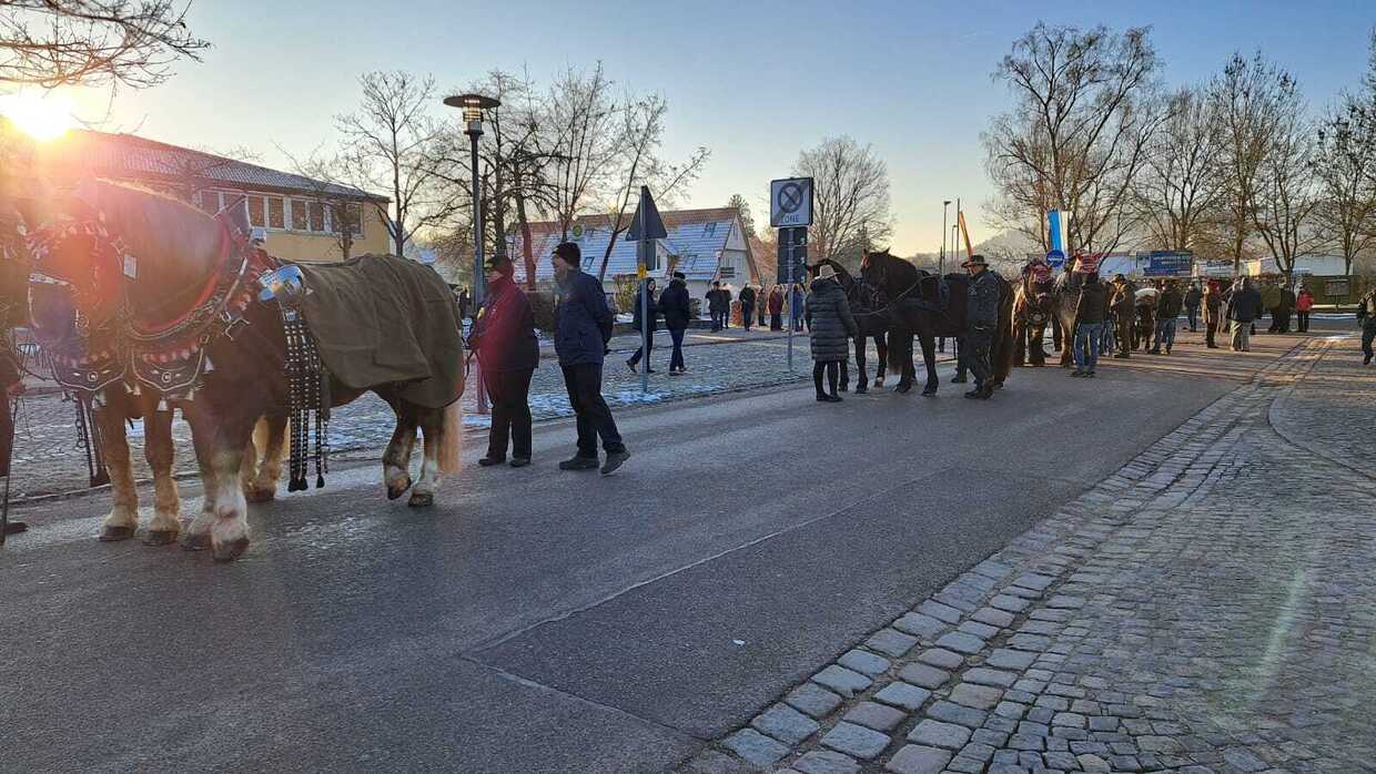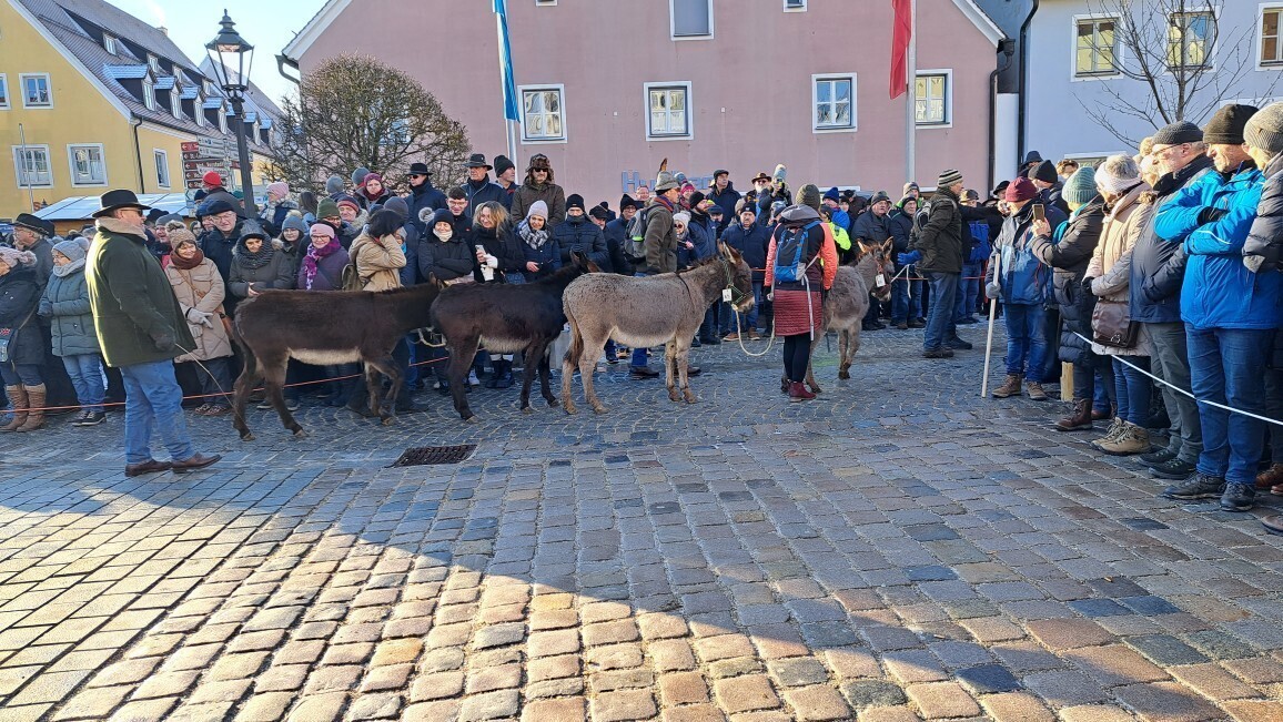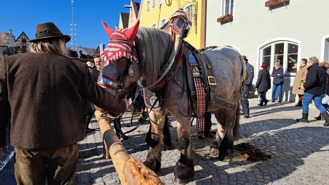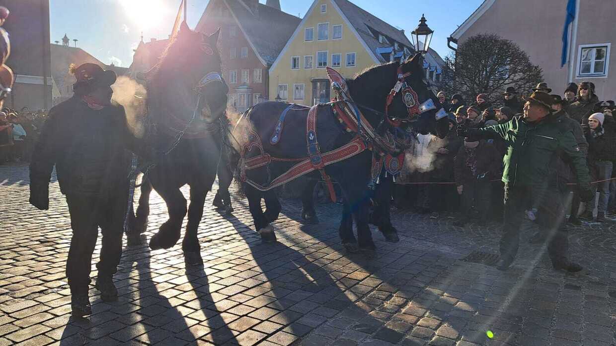 Bei prächtigstem Winterwetter ist heute in Berching im Landkreis Neumarkt der Rossmarkt gestartet. Zwei Jahre lang musste das größte Wintervolksfest Bayerns wegen Corona pausieren. Der traditionelle Pferde-Auftrieb mit über 100 geschmückte Pferde und Kutschen ist pünktlich um 9 Uhr gestartet. Das erste Mal mit dabei ist auch eine Pferdestaffel der Polizei Nürnberg. Als Redner ist dieses Jahr Ministerpräsident Markus Söder in Berching. Es ist heute schon sein vierter Rossmarkt-Besuch, aber der erste als Landesvater.