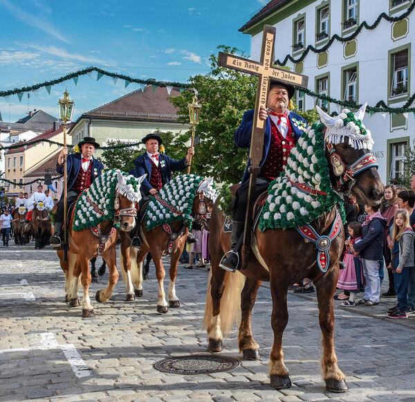 In Bad Kötzting hat am Morgen der traditionelle Pfingstritt begonnen. Er ist eine der größten und ältesten berittenen Prozessionen Europas und geht auf das Jahr 1412 zurück. Hunderte von Reitern auf prächtig geschmückten Pferden ziehen aus der Stadt zu einem sieben Kilometer entfernten Kirchlein, dort dreht die Prozession wieder um. Später wird auf dem Pfingstfest in Bad Kötzting weitergefeiert. Der Pfingstritt ist seit 2015 immaterielles Kulturerbe in Bayern.
