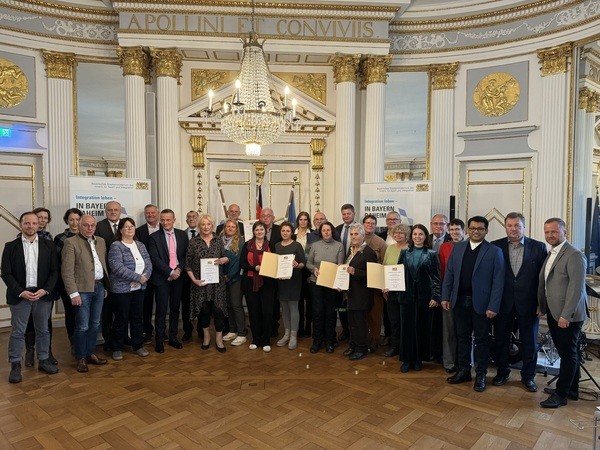 Bild: Preisträger des Oberpfälzer Integrationspreises 2024 mit dem Integrationsbeauftragten der Bayerischen Staatsregierung, Karl Straub (8.v.l.) und Regierungspräsident Walter Jonas (Mitte).
