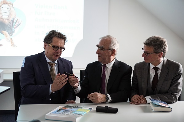 Der bayerische Kunst- und Wissenschaftsminister Bernd Sibler nahm zusammen mit Direktor Dr. Richard Loibl den Füllfederhalter von Dr. Theo Waigel persönlich in Empfang und betonte anlässlich der Veranstaltung: „Bayern und Europa sind eng miteinander verbunden. In Maastricht wurde unter maßgeblicher Beteiligung Bayerns der Grundstein für die Europäische Union gelegt. Wie kein anderes deutsches Bundesland ist Bayern mit seiner Vertretung mitten im Europaviertel in Brüssel prominent vertreten. Dieser Füllfederhalter repräsentiert Zeitgeschichte von europäischer Tragweite und steht für diese enge Verbundenheit zwischen Bayern und der EU. Ich danke Dr. Theo Waigel herzlich für die Leihgabe ans Museum des Hauses der Bayerischen Geschichte.“ Staatsminister Sibler freue sich sehr, dass mit Dr. Theo Waigel das Exponat von einem politischen Urgestein und Vorbild überreicht wird.
