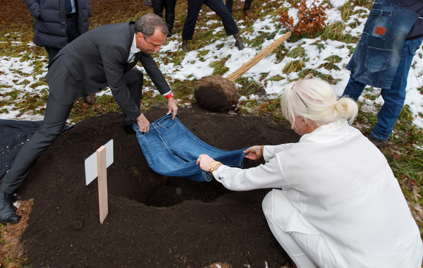 Mitten im Grünen, hier in der Gemeinde Wald, umgeben von Wiesen und Wäldern, von seltenen Lucharten und hauseigenen Bienenvölkern liegt die Firmenzentrale eines ganz besonderen Hosenherstellers. MAC Mode stellt besonders umweltfreundliche Jeans her. Einige davon sind sogar komplett biologisch abbaubar. Um das zu würdigen war jetzt sogar Bayerns Umwelt- und Verbraucherschutz Minister Thorsten Glauber zu Besuch und hat gemeinsam mit Firmenchefin Eveline Schönleber einen Baum gepflanzt – und zwar über einer im Boden vergrabenen MAC Jeans. Als Symbol für den Umweltschutz.