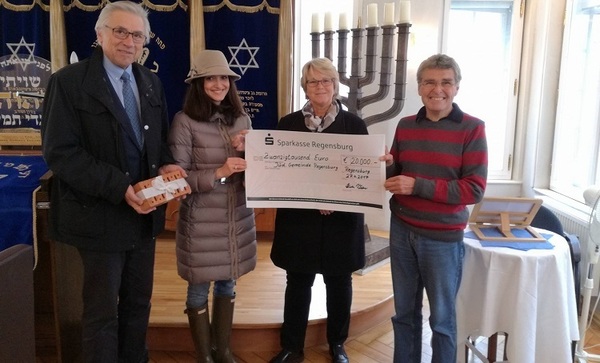 Die neue Synagoge in Regensburg nimmt Gestalt an. Heute hat die Jüdische Gemeinde zum dritten Mal eine Großspende von 20.000 Euro erhalten. Das Geld stammt größtenteils aus dem sogenannten „Bausteinprojekt“ des Fördervereins. Im Herbst soll Richtfest sein, im Februar 2019 wird die neue Synagoge dann eröffnet, genau 500 Jahre nach der Zerstörung des ersten jüdischen Gebetshauses in Regensburg.